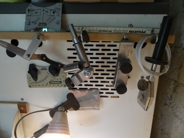 Für die Maschine - siehe Bild - habe ich mir " damals " vor Jahren , auch die jeweiligen Halterungen für's Werkzeug angeschafft .