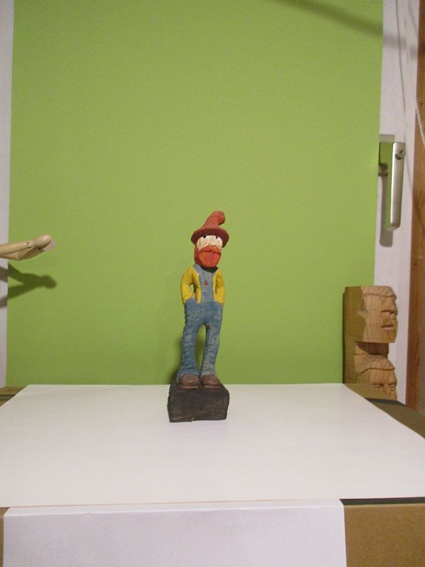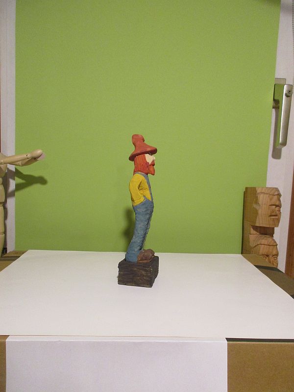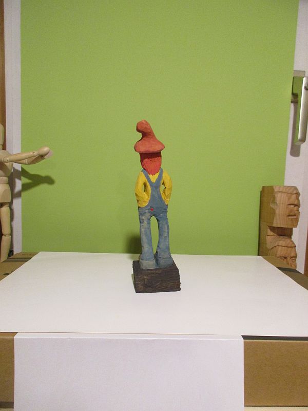nach Delmer 1 nun Delmer 2. Ich schnitze oft, vor allem wenn ich längere Zeit nicht geschnitzt habe, ein zweites Stück um erst einmal wieder rein zu kommen. Mir war der erste auch etwas zu ruppig und da ich Grundsätzlich am für mich fertigen Stück nichts mehr verbessere/ändere, schnitze ich lieber einen Neuen. Ich habe versucht beim bemalen eure Ratschläge zu befolgen. Das schönste für mich ist nach wie vor, wenn ich Morgens 4,30 Uhr die fertige Figur in unserer Küche auf den Tisch stelle und meine Frau sich bei einer Tasse Kaffee darüber freut. Delmer ist wieder aus Linde gefertigt und etwa 22 cm groß und mit Malfertigen Deckfarben nach Grundierung bemalt.