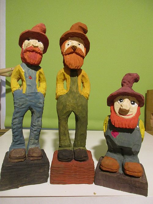 Du wirst zum Schnellschnitzer und das wäre die Voraussetzung Deine Werke auch halbwegs wirtschaftlich zu verkaufen. Interessant wie Du die Hosenbeine der beiden Delmer unterschiedlich geschnitzt hast. Wenn Du Deine Farben "wässeriger" verwendest, wird die Bemalung automatisch transparenter. Wer schnell schnitzt entwickelt dabei dann langsam auch eine persönliche "Handschrift" im Schitt.