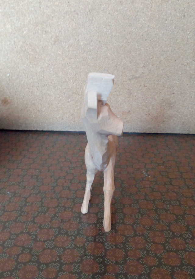 Hier mal ein Foto vom noch nicht fertigen Reh, geht halt alles noch ein wenig langsam von statten. aber ich denke das es mit der Zeit wieder wird. Das arbeiten mit Holz hatte mir gefehlt darum hatte ich gleich den nächsten Tag das mit den Reh mir vorgenommen.