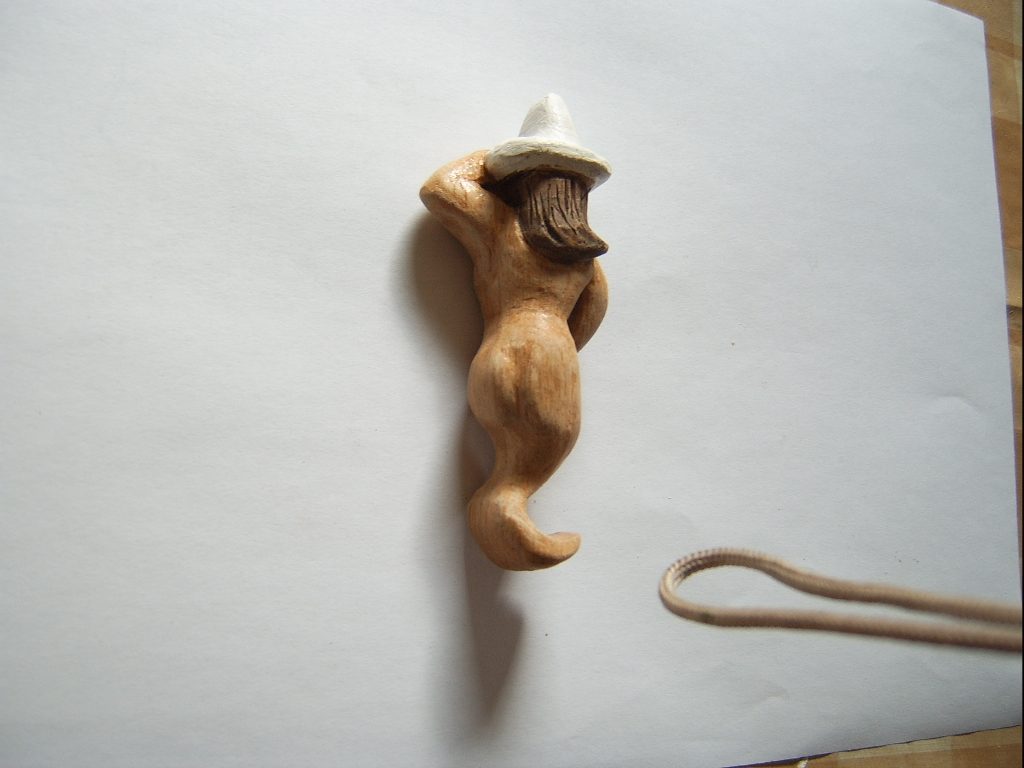 Kondomi , habe ich ihn getauft - er ist aus Eiche geschnitzt und 10 cm lang .( siehe Kopfbedeckung )