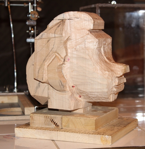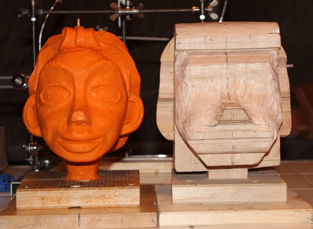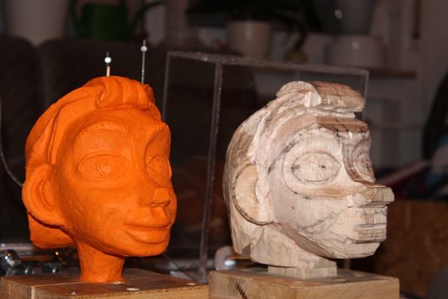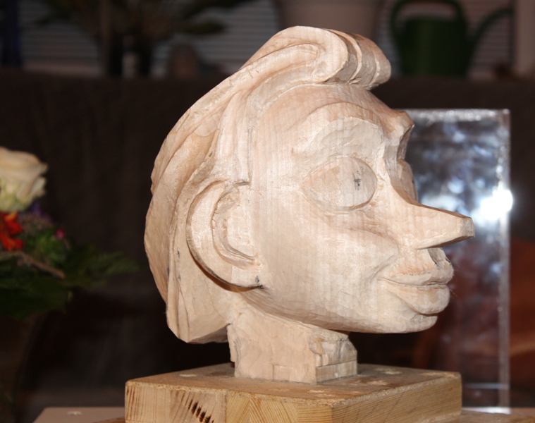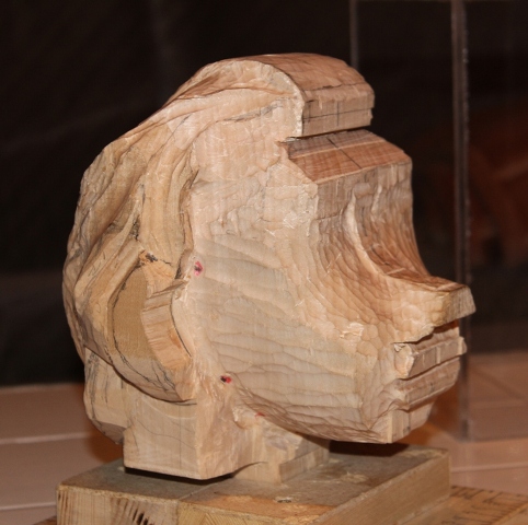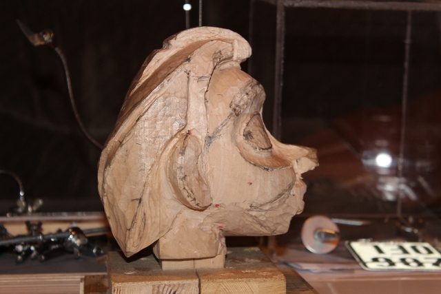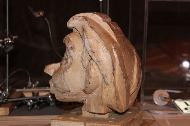 Dann gings ans Holz, der Kopf ist vom Kinn bis oben 17 cm.