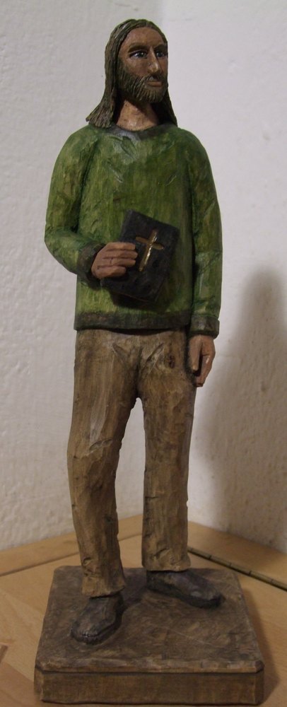 Glückwunsch zu Deiner moderner Jesus Figur! Ausgesprochen gut gelungen, Haltung, Proportion, Schnitzoberfläche, Farbe, einfach alles gelungen.