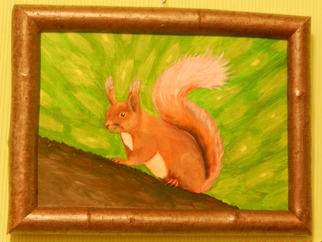 ich bin echt erstaunt darüber, wie gut du malen kannst. Das Eichhörnchen sieht richtig naturgetreu aus und der Rahmen um das schöne Bild passt ausgezeichnet dazu. Meinen Respekt für diese tolle Arbeit.
