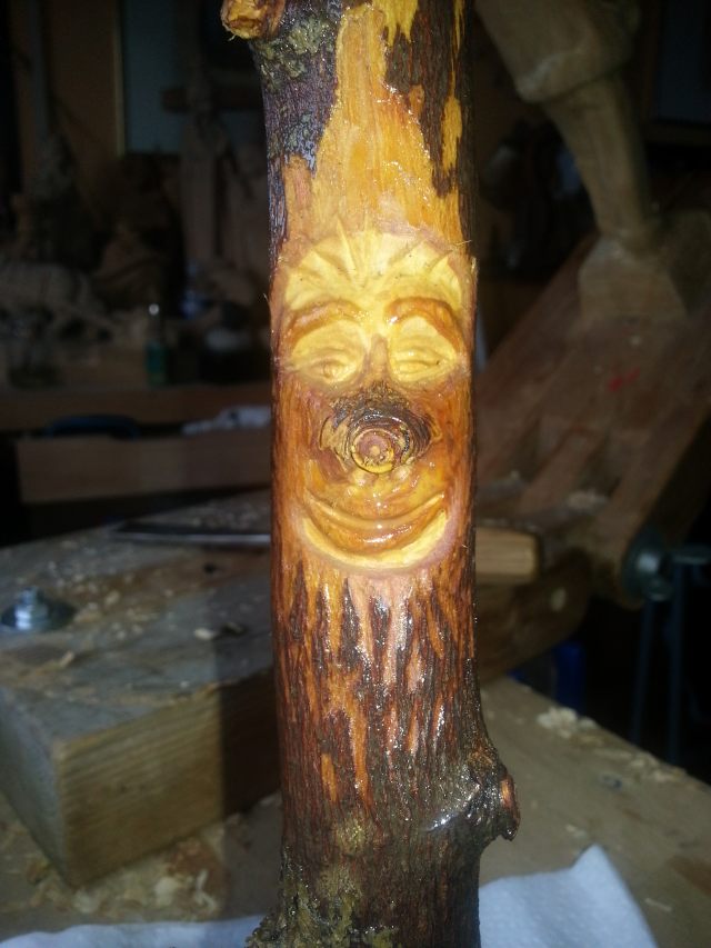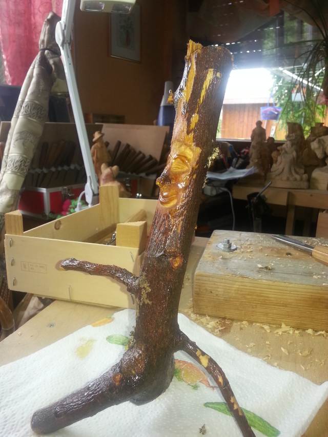 Diese Wald.- und Wurzelgeister sind immer wieder eine preisgünstige Schnitzübung , denn so Teile kann man bei einem Waldspaziergang einige finden oder auch von umgekippten Bäumen absägen .