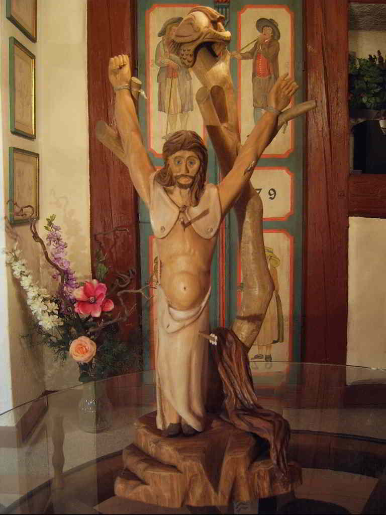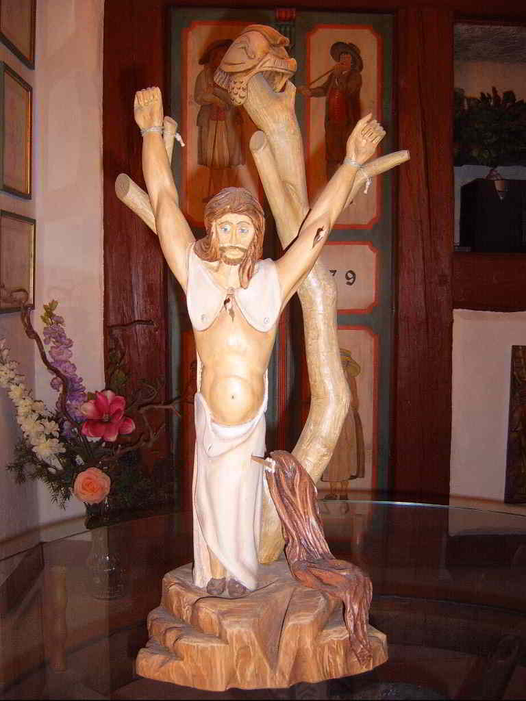 den kennt ihr sicherlich noch ? Habe ihn aus einer Kastaniengabel in einem Stück geschnitzt - aber , man sieht schon, daß ich vom figürlichen Schnitzen nicht zuviel Ahnung hatte. Die Proportionen der Glieder sind schon sehr daneben, aber was soll's . Die Kastanie steht vor meinem Haus und als sie zu groß wurde, haben wir die Äste großzügig abgesägt , so hatte das auch was gutes für sich .